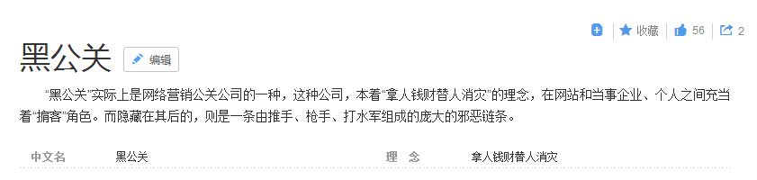 百度上“黑公关”的词条是这样的。