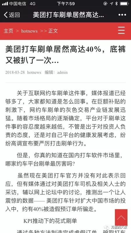 滴滴公关负责人的回应其实还是有些委婉了,大叔再延伸解读一下:你为了转移刷单的话题,干脆自己发拙劣的黑稿,来撇清刷单的事实,这是十几年前的PR手段。显然,公众还是买账的,所谓“无图无真相”。而为了让这个“刷单的真相”不会真的黑到自己,所以,你找了一个小网站发出来,目的就是制造两张截屏的对比冲突,然后来博同情。