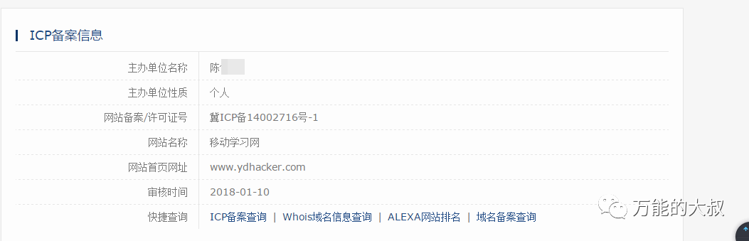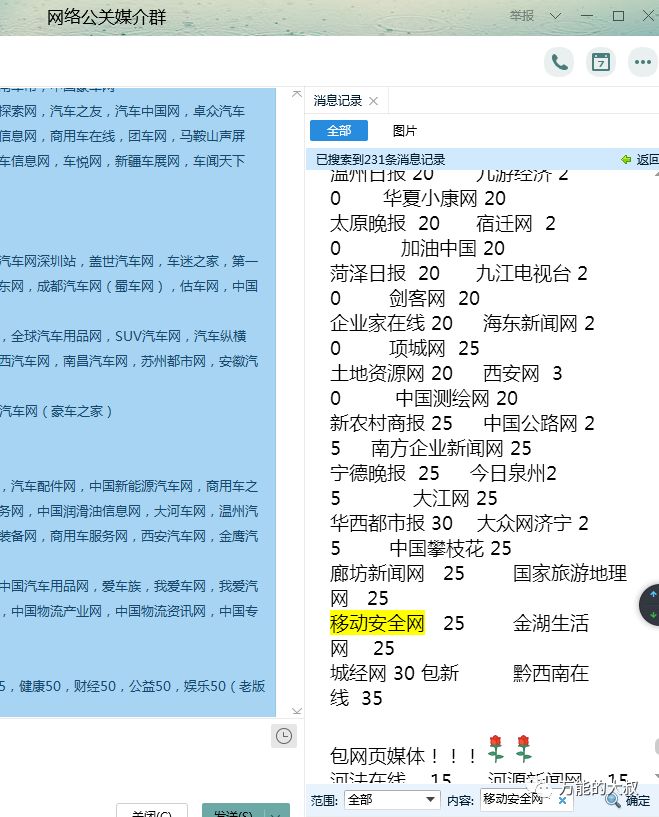 大叔简单在alexa查了一下这家网站的ICP备案,是一个名叫“陈**”的个人网站,备案的名字是“移动学习网”,但在页面上改成了“移动安全网”。大叔又在自己N年前加入的一个网络公关的QQ群里搜索关键词发现了这家网站发一篇“新闻”的报价是25元。